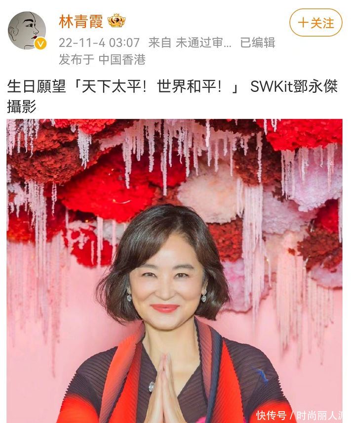 林青霞68岁大寿许愿有格局!穿中国红长裙庆生,喜庆得像参加春晚