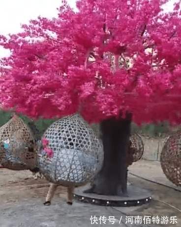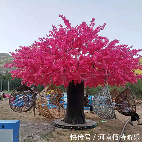 网红许愿树就是在人们美好期许下的产物。它拥有美丽的外观,粉色的树冠让人们仿佛能看到粉红泡泡在闪烁,抢眼的外观总能吸引很多目光。一棵树再美丽也只是一棵树,为了增强他的趣味性,给它赋予了灯光,旋转等功能,游客可以在美丽的许愿树下乘坐秋千椅上休息。