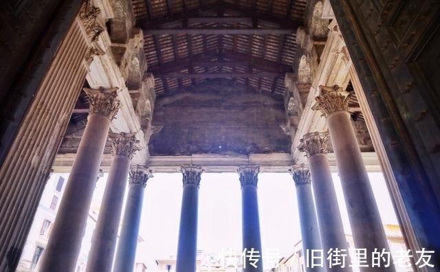 这是我们意外中找到的,公元80年的火灾,使万神殿的大部分被毁,仅余一长方形的柱廊和16根花岗岩石柱,这一部分后来被作为重建的万神殿的门廊。从门廊正面的八根巨大圆柱仍可看出万神殿最初的建筑规模,门廊顶部则刻有宫殿初建时的纪念性文字。