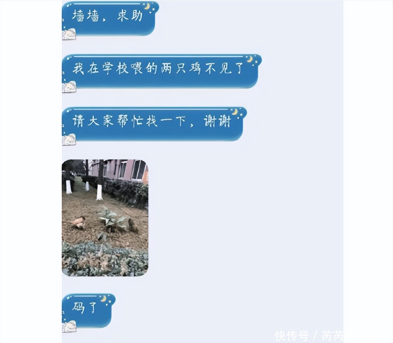 学校表白墙可以找鸡,没错请不要想歪,就是字面意思的找鸡,学生不能光明正大地在寝室养宠物,但长期在校园内生活实在苦闷,直到这位大学生在校园中发现了两只散养的鸡。