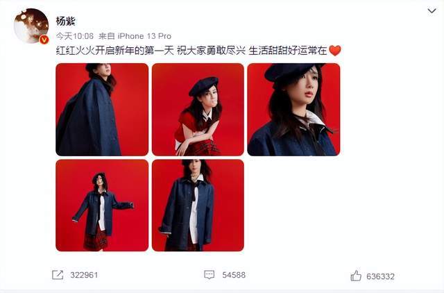 杨紫在新年的第一天,发文:“红红火火开启新年的第一天 祝大家勇敢尽兴 生活甜甜好运常在”,相信这是杨紫给观众的祝福,也是给自己美好未来生活的一个寄望。