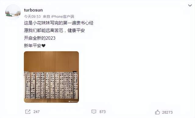 通常节假日,父母都会带着孩子去游玩,明星大部分也是如此,没有想到在新年的第一天,孙俪化身成贤妻良母,陪伴女儿小花一起写隶书心经。