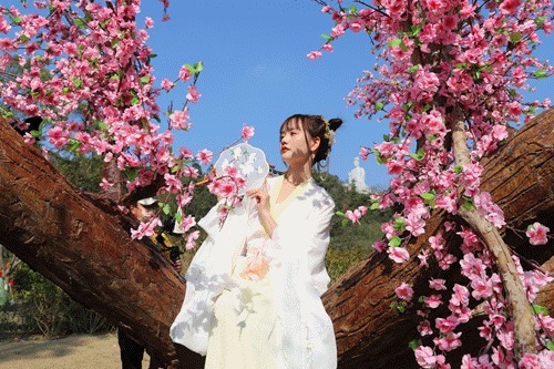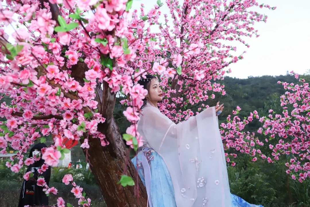 桃林之约里数米高的唯美桃树,让您在桃林之间,怎么拍怎么好看,简直就是一个现实版的仙侠世界!