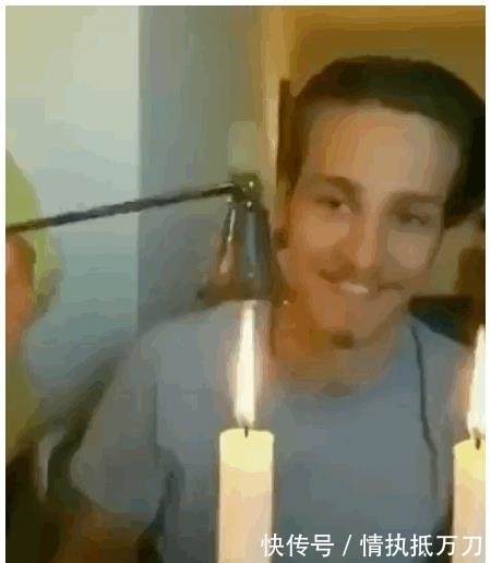 其实很简单,这根蜡烛是特制的整蛊蜡烛,网上专门有卖的,之所以吹灭了能够复燃,是因为烛芯里含有打火石的金属镁粉。