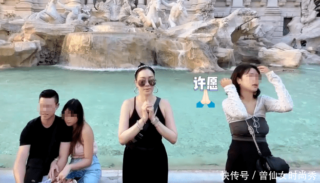 值得一提的是,在罗马度假时,钟丽缇两次到许愿池许愿,第一次因为人太多,所以,第二次她和老公张伦硕早晨7点多出门再次到许愿池许愿,虽说他们住的酒店距离许愿池只有5分钟路程,但到达之后发现许愿池游客还是超多,为此,两次记录下的许愿画面都有游客入镜。