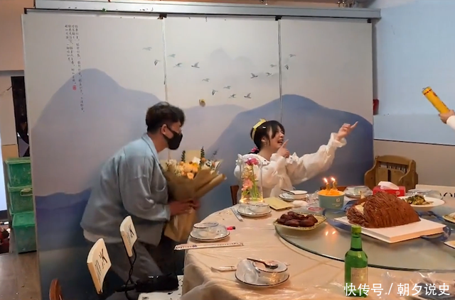 在浙江杭州,一名女孩在当天过生日,朋友们聚在一个包间里吃饭。本来以为男朋友有事没有办法过来了,谁知道这名女子在闭着眼睛许愿的时候,男朋友突然抱着鲜花出现在了包间门口。此时朋友们还站在两边给这名女生唱生日祝福歌,等到朋友放完礼花以后,女孩一转头,突然看到了旁边单膝跪地的男朋友。