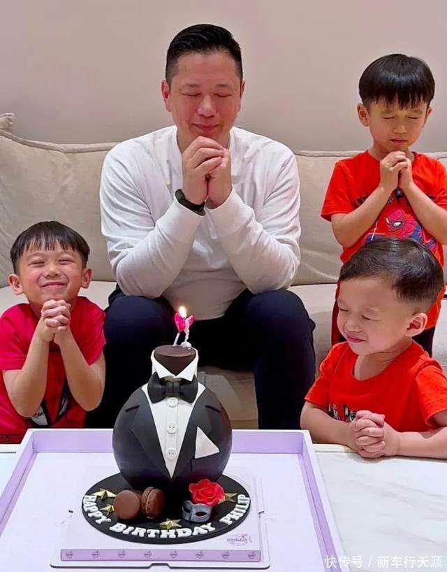 胡杏儿为老公准备的蛋糕非常精致,特意做成球形西装款式,和李乘德平时的形象很接近,帅气又绅士。李乘德双手合十闭眼睛许愿,三个儿子也跟着爸爸一起做相同的动作,每个人表情都不一样,看上去特别喜感。