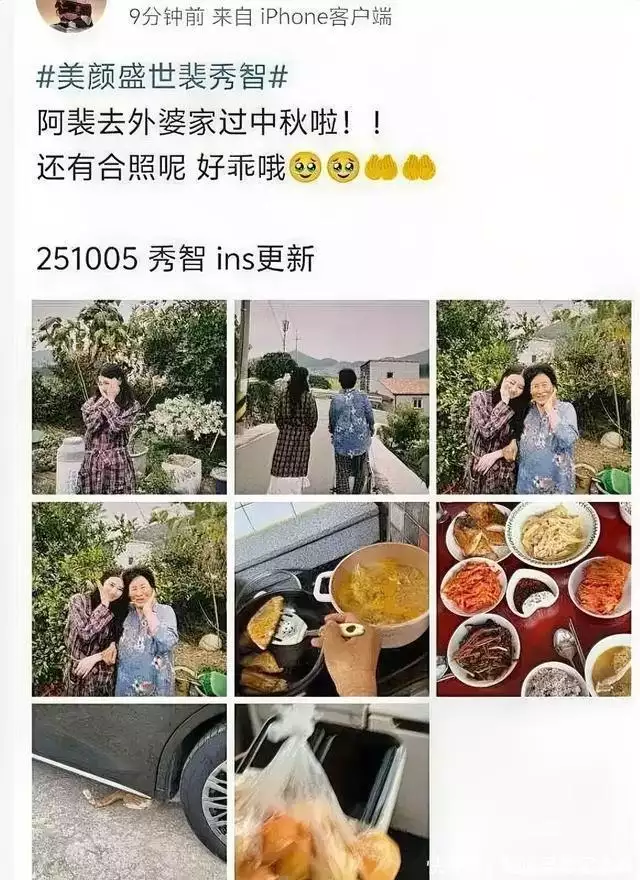 5日仍在正常更新动态,与亲人一起庆祝中秋节,晒照里透露着一股岁月静好的味道,似乎未受中韩负面舆论影响。