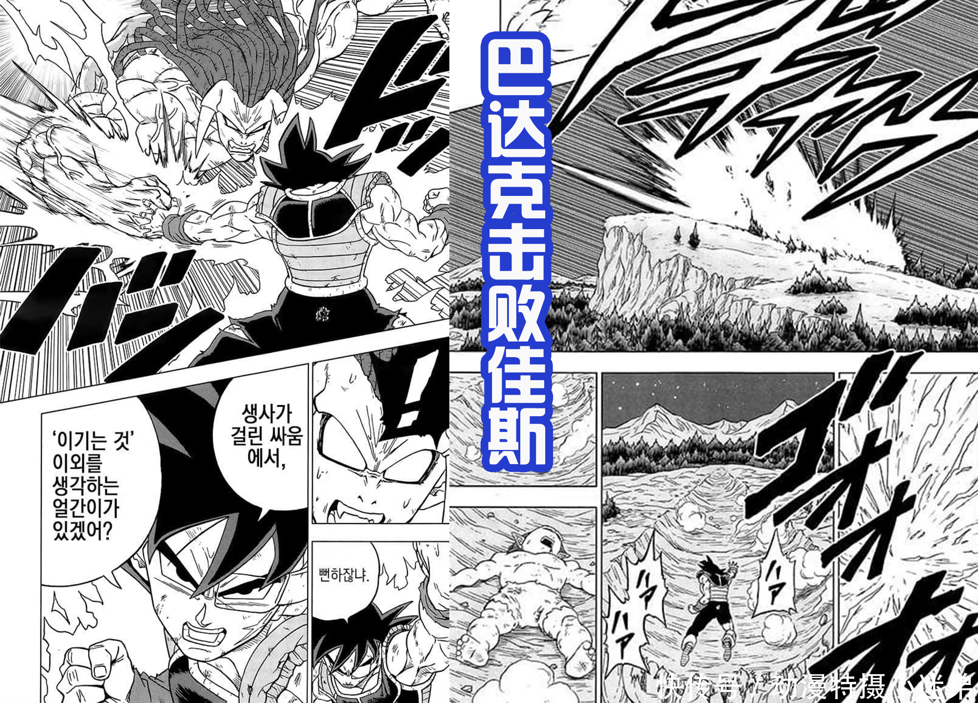 《龙珠超》漫画的第83话目前已经出现了部分的图透了,依然还是回忆!还是孙悟空的父亲巴达克VS佳斯,因为之前的佳斯就很强了,所以大家也都好奇巴达克到底是怎么击败他的?原来是巴达克的赛亚人尾巴没了,然后爆发潜力击败了佳斯。而且里面也有孙悟空能够健康成长的原因,一切都是因为父爱!
