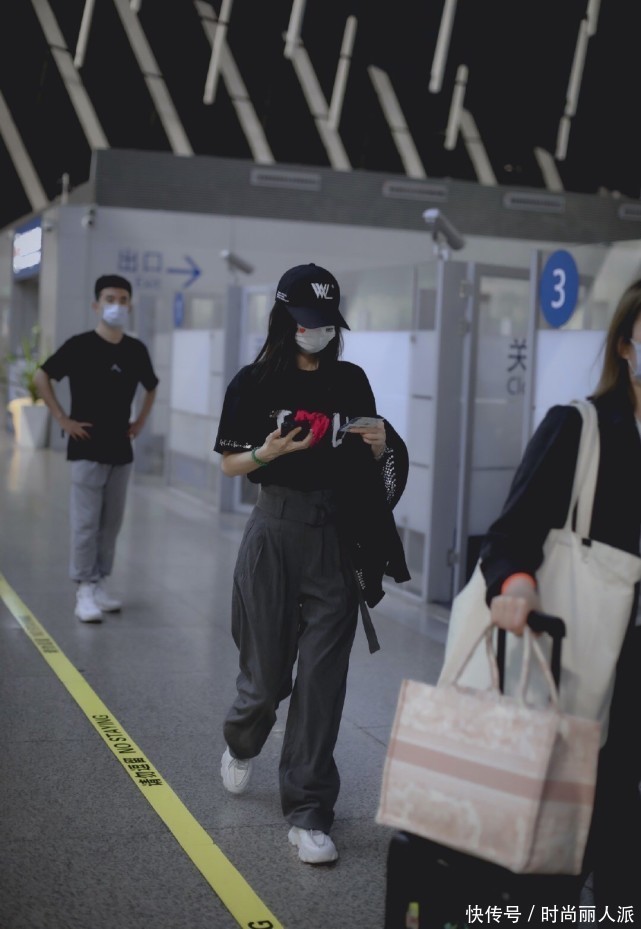 Baby大部分的穿搭都是有效减龄的效果,就拿她这次上山拜佛的穿搭来说,整身的黑色调穿搭,虽然没有在配色上体现造型的减龄感,整身的服装在设计上,也没有明显的少女感的元素,但是因为佩戴了鸭舌帽,还是让baby的这身造型最终体现的减龄效果十分明显。